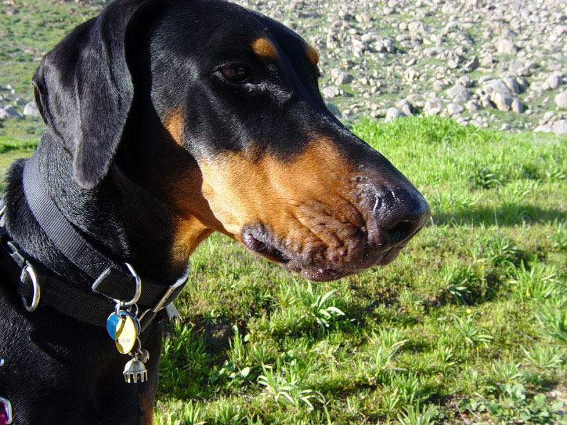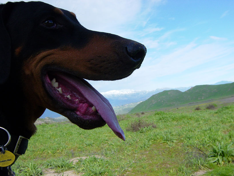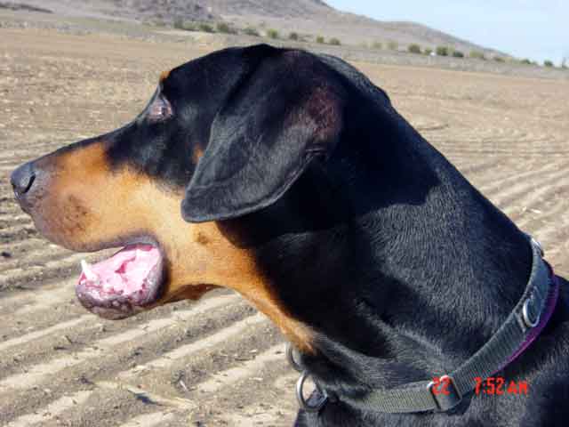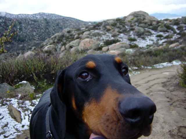 My name is Jake and I was adopted by my Ma and Pa from the Ramona Animal Shelter in San Jacinto, CA. I'm a Doberman Pincer. They figure I was about a year old, so, my birthday was chosen as September 28, 2003. That's the date in 2004 that I was found by Animal Control as a stray.